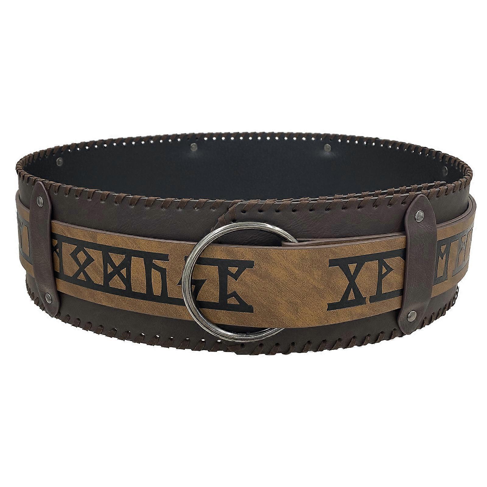 Medieval Keltic O Ring Waist Belt Vintage Knight Waistband PU Corset Belt Men Women Unisex Waistband Cosplay Waiststrap B style rune brown