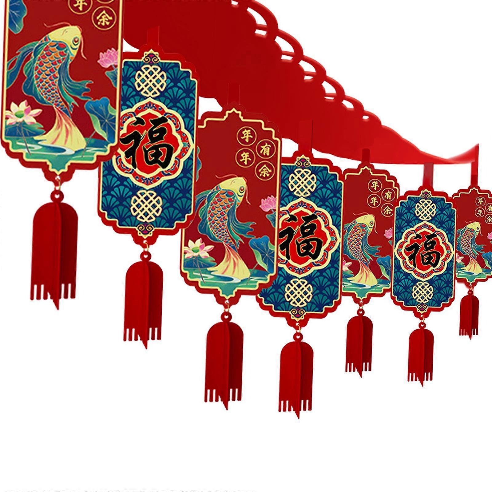 Description: 【Premium Material】: Chinese Spring Festival traditional decorations for layout of the new year's house is made of felt cloth, lightweight and durable. 【Size Information】: Chinese New Year Dragon Year Ceiling Decoration each pendant is about 18cmx8.5cm/7.09inchx3.35inch. 【Features】: Celebrate the 2024 Chinese New Year of the Dragon with our festive decoration set, perfect for setting up a vibrant and traditional atmosphere. 【Occasion】: Chinese Spring Festival Hanging Garland great for living room, bedroom, garden, office, shop or resraurant. 【Chinese Festival Decorations】: Chinese New Year decorations are great supplies to decorate your house, also for lantern festival,wedding decorations. Specification: Material: Felt Cloth Size Chart: Pendant: 18cmx8.5cm/7.09inchx3.35inch Package Includes:Fish 2m Spring Festival Hanging Garland, 6 Pendants Note: Please allow slightly errors due to manual measurement and different monitors.
