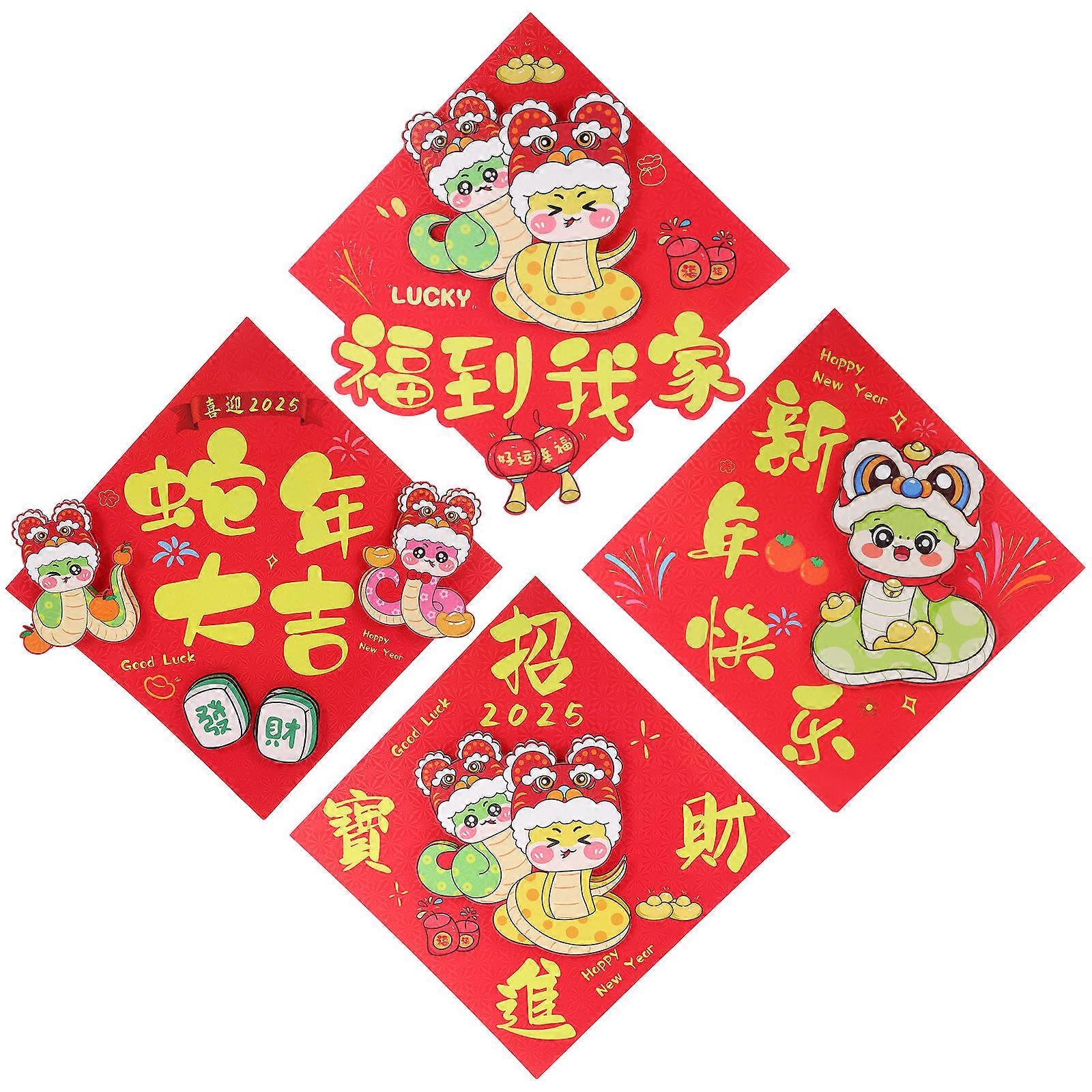 Chinese New Year Stickers Fu Character Sign Festive Atmosphere Door Window Wall Decoration White Card Paper 40.00X40.00X0.10CM 4Pcs
