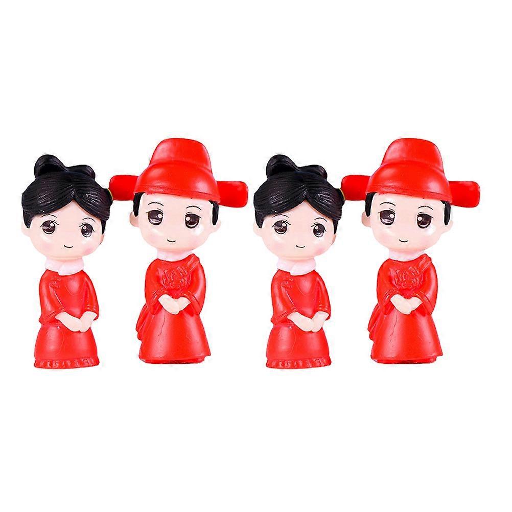 Chinese Bride Groom Cake Topper Plastic Wedding Celebration Decor Assorted Color 5.7X3.6X3.6cm Visual Enjoyment 4Pcs