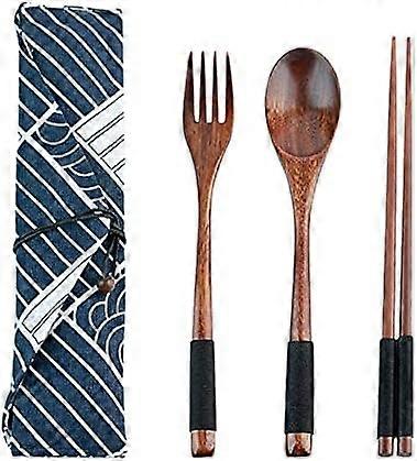Chinese Wooden Chopsticks Spoon and Fork Set, Wooden Flatware Tableware Cutlery Messgear Set Utensils Reusable Flatware (brown) (3pcs)