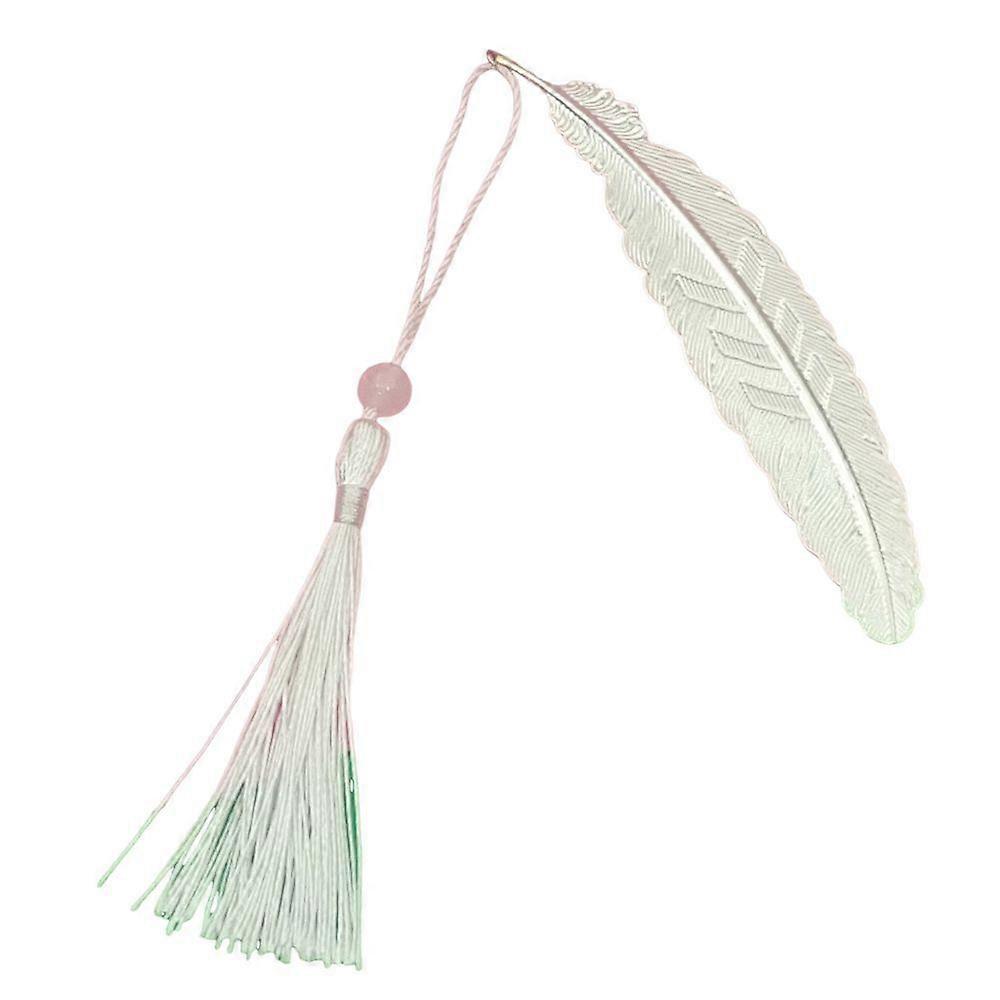Chinese Style Bookmark Feather Shape Metal Electroplated Bookmark with Tassel Decorative Book Mark Student Supplies