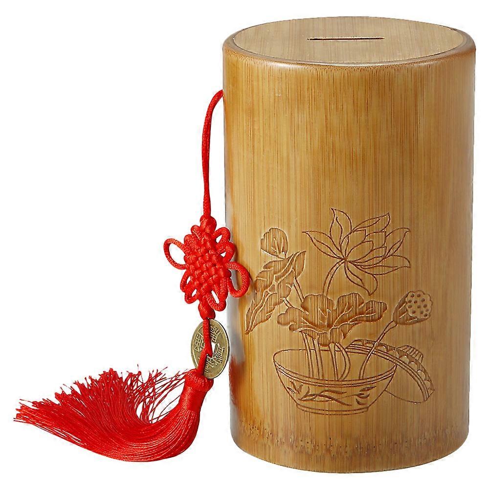 Chinese Style Bamboo Coin Bank Decorative Coin Container Bamboo Coin Holder Coin Accessory