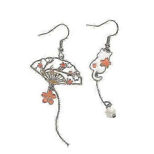 Chinese Style Folding Fan Birds Cloud Hanging Dangle Ethnic Earring Women Asymmetric Fish Cat Rabbit Bird Animal Drop Earrings