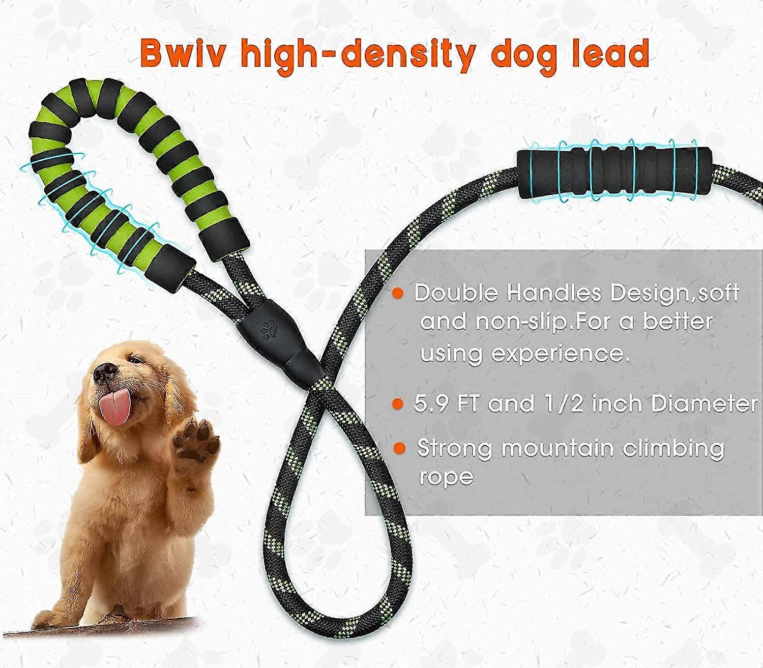 1.8m Dog Leash With 2 Soft Strong Reflective Rope Handles For Medium Or Large Dogs Walking Hiking Black/green-