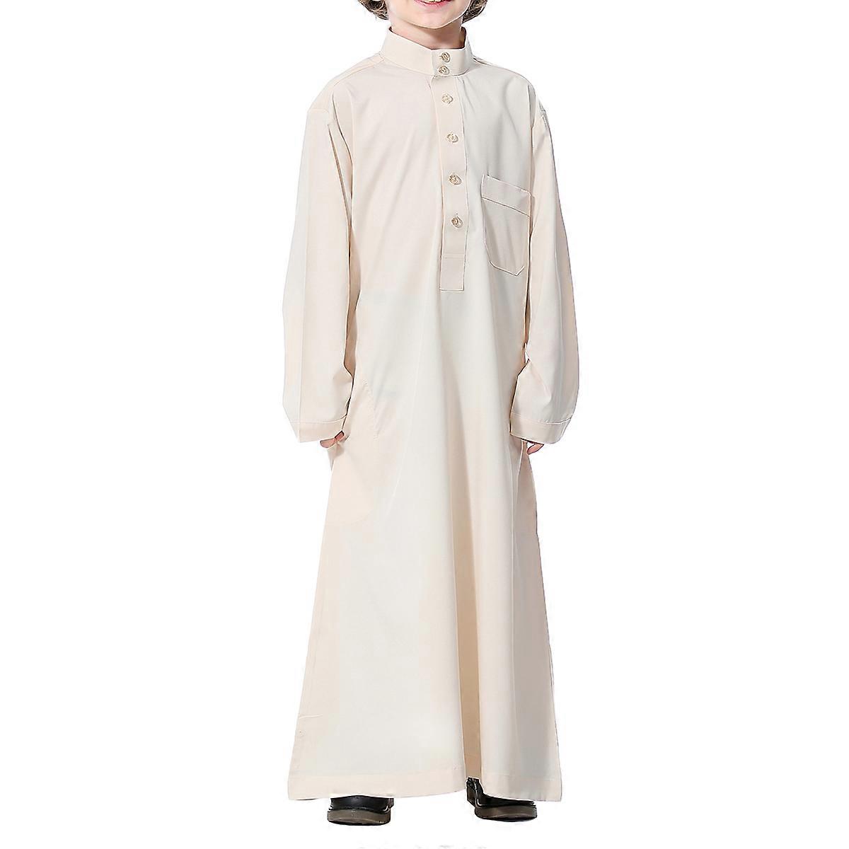 Middle Eastern Robe Elegant Style Festival Wear Polyester Cotton Material Long Sleeve Beige Gown for Teenage Boys 160cm 1Pack