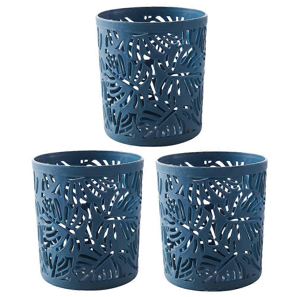 Hollow Pen Pots Desk Organizer Creative Design Minimalist Dark Blue 10.5X10X10CM Stationery Organizer 3Pcs