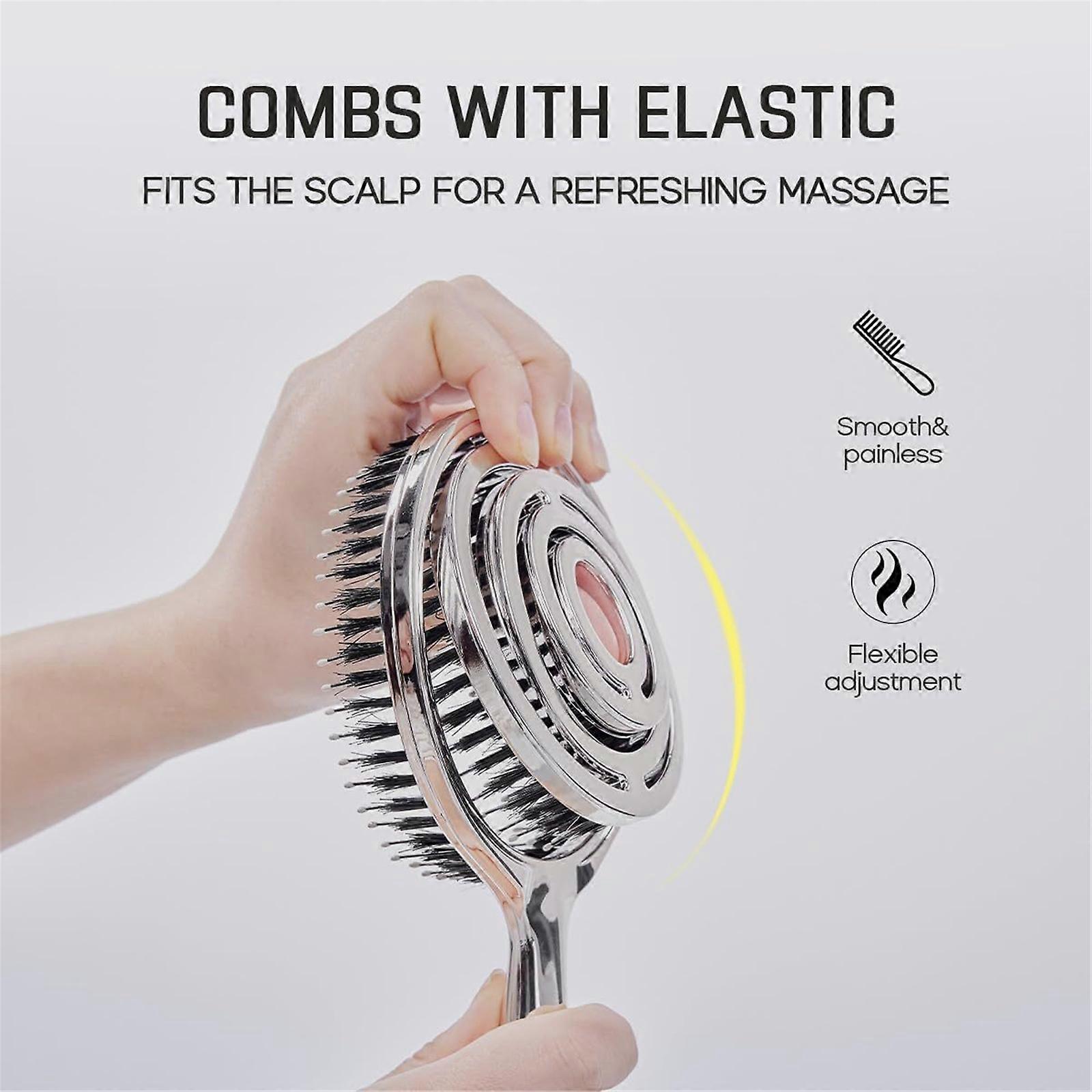 Hollow Round Bristles Brush Electroplated Anti Static Massage Tool Reduces Heat Damage For Quick Drying Voluminous Hair Styling Silver