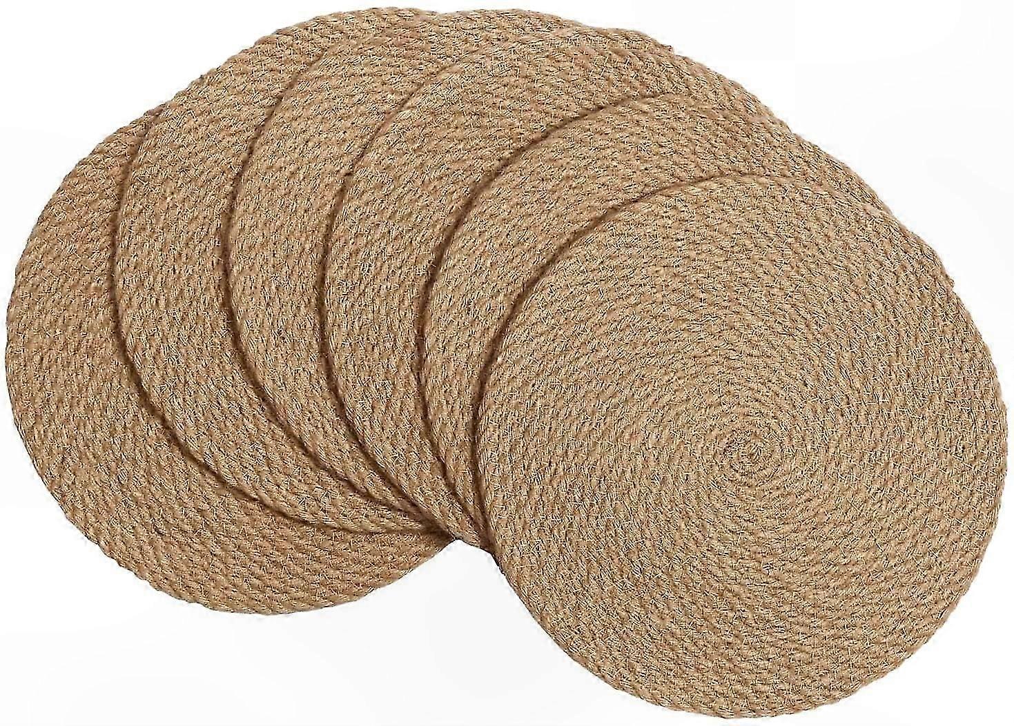 Set of 6 Round Jute Placemats, 12 Inch Braided Heat Insulation Mats for Tables, Non-Slip Thick Coasters for Hot Dishes