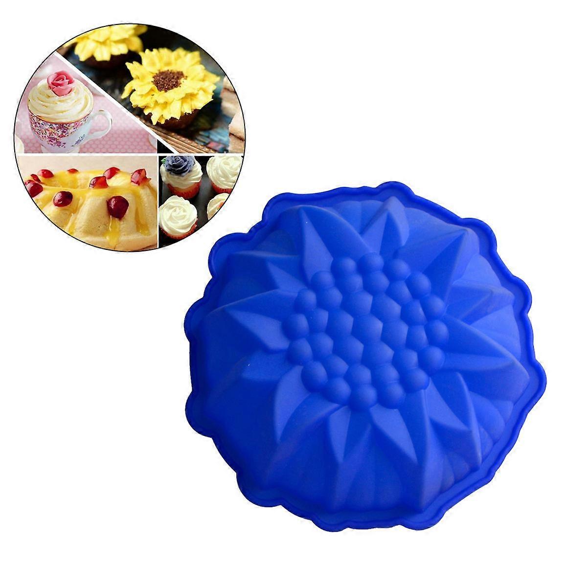 Round Silicone Baking Pans Sunflower Shaped Cake Molds For Home Bakers Blue Color Non-sticky And Reusable 1Pcs