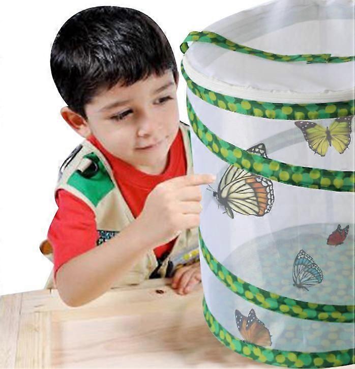 Round bucket green leaf edging butterfly cage insect terrarium can be folded