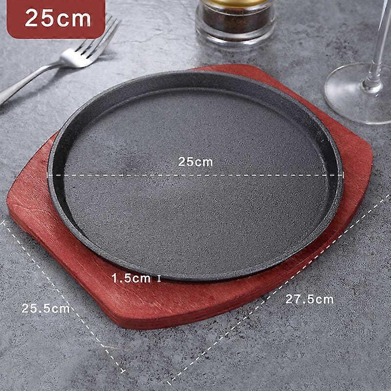 Description: Material:Iron+Wooden Size:as picture Measurement Details in the attached picture. Feature: 100% Brand new. Solid Cast Iron Construction and wooden holder. Very rustic and authentic look on your table. Great for Hispanic and Japanese cooking or anything needed grilled in the plate. Great cast iron hot plate and handle with wooden holder for the table. Note: 1.The real color of the item may be slightly different from the pictures shown on website caused by many factors.such as brightness of your monitor and light brightness. 2.Please allow slight deviation for the measurement data. 3.Please allow 1-3cm error due to the hand measurement. 19CM 21CM 23CM 25CM