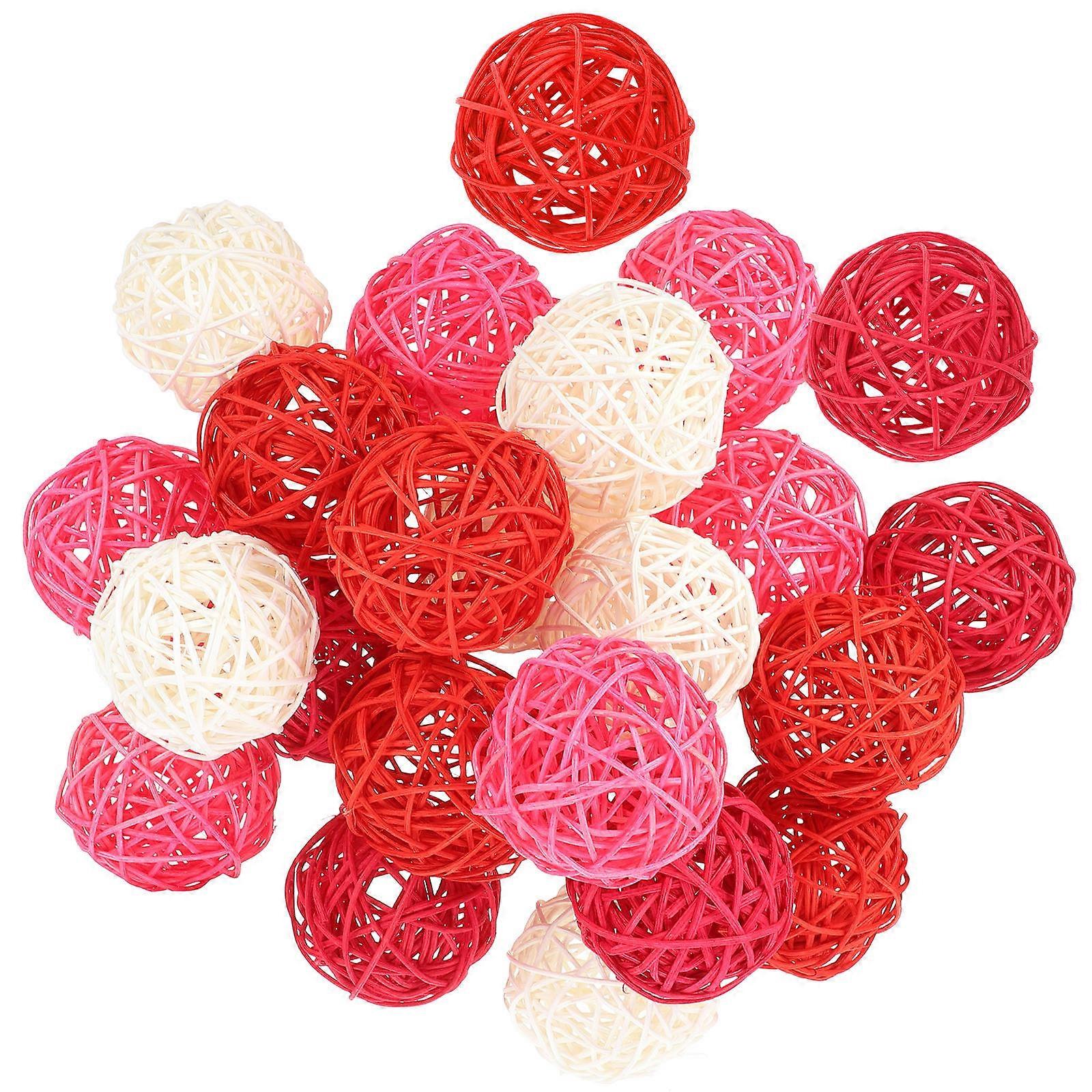 Rattan Balls For Decorating Round Shaped Rattan Balls Valentine’s Day Crimson Red 7X7cm Holiday Decoration 24Pcs