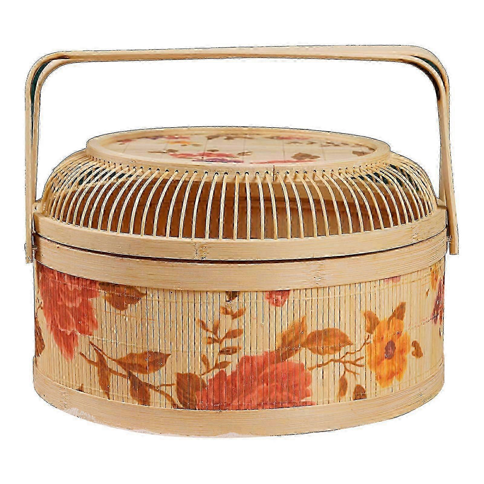 Round Bamboo Hand Woven Basket with Lid for Kitchen Use