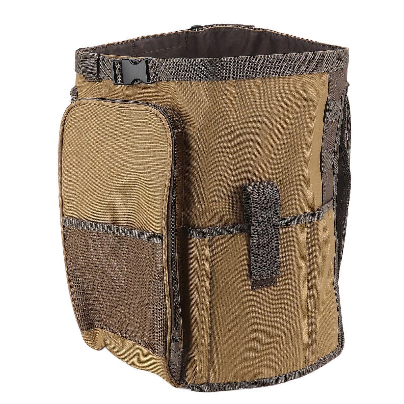 Round Shape Bucket Organizer Bag, Large Capacity, Portable Handle, Khaki, Outdoor, Garden Tool Bag
