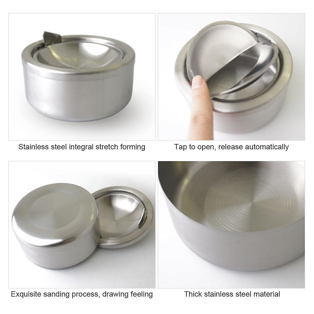 Round Windproof Ashtray Smoking Ash Tray With Lid Stainless Steel Ashtray
