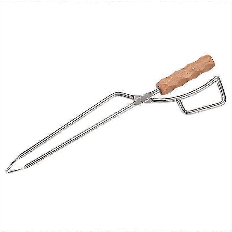 Log Tongs Stainless Steel Fireplace Tongs with Beech Wood Handle Accessories High Temperature Resistant Fire Tongs for Outdoor41.5*11.5*3cm