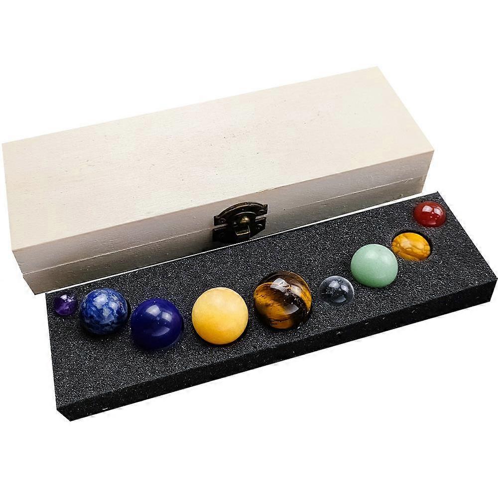 Nine Planets Solar System Natural Crystal Sphere Balls Gemstones Stone W/ Storage Box Feng Shui Teaching Props Meditation Decor Collection