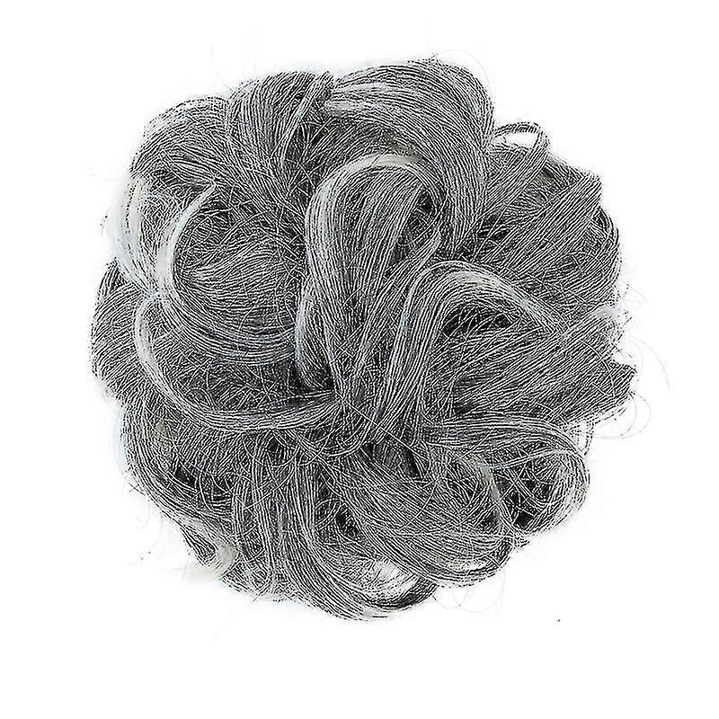 Messy Bun Hair Pieces Hair Scrunchies For Women Girls Curly Wavy Hair Buns Synthetic Updo Ponytail Extensions Donut Hair Black Mix Gray And White Tips