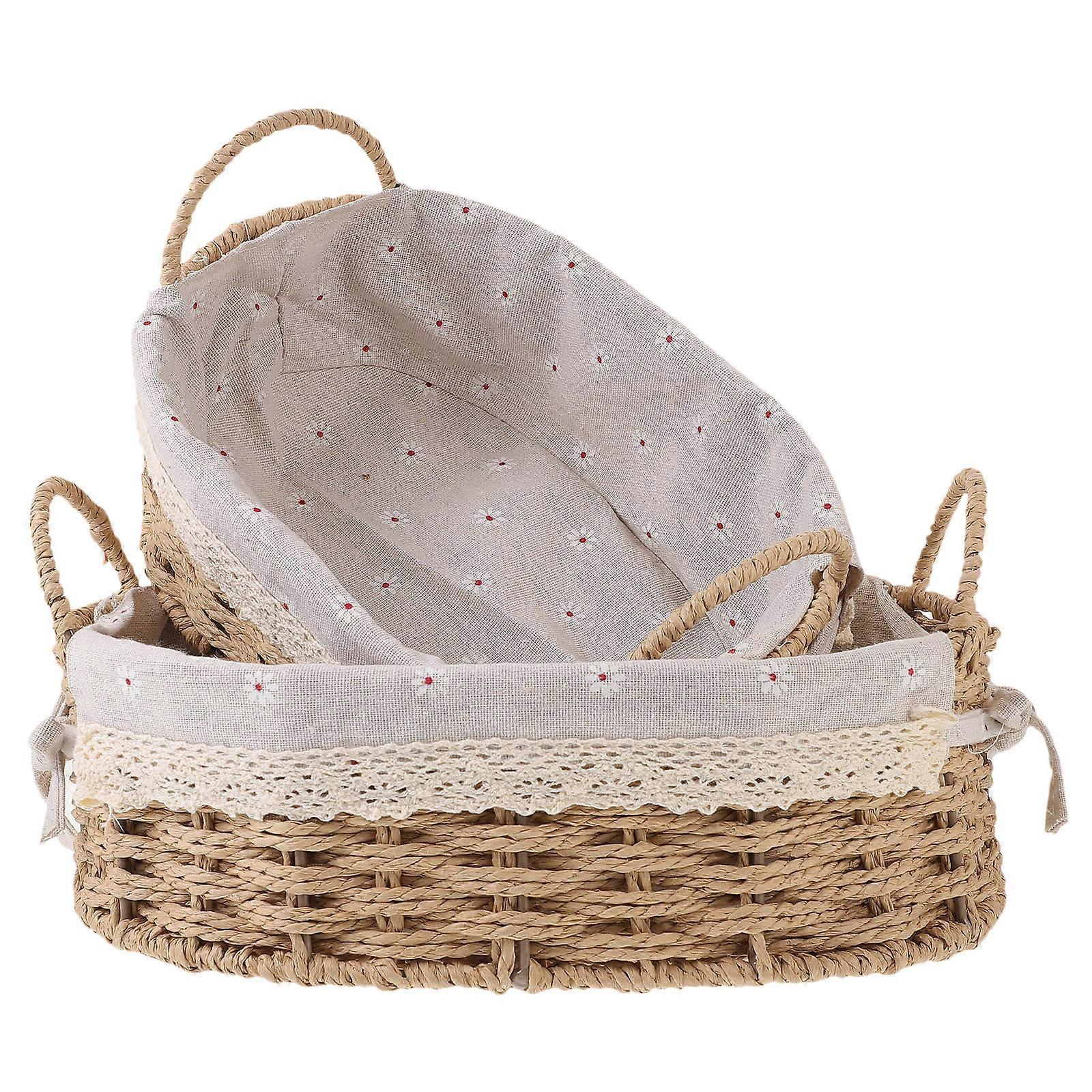 The woven handicraft basket with liner can add elegance and warmth feel to your home. These woven baskets help you keep important item and clutter tidy and in one place where you could get it quickly. The basket is a multi-use storage container, utility and suitable for anywhere in the house. Features - ColorAssorted Color -Material:Paper rope, iron frame, lining cloth - Size: 30.00X21.50X9.50cm/11.79X8.45X3.73in - Size: 26.00X18.00X9.00cm/10.22X7.07X3.54in - Selected material, which is not easy to deform or break, the woven basket can be used for a long time. - The reasonable structure can easily store all kinds of small objects, making your desktop tidier. - Practical storage basket or as a decoration, suitable for your bedroom, bathroom, living room, closet, shelf or anywhere! - Designed with liners, these woven baskets can provide additional protection, and will not scratch your things. - Simple and generous look design makes this basket match very well with many homes' decorative styles. Package list: 1 × large woven basket 1 × small woven basket