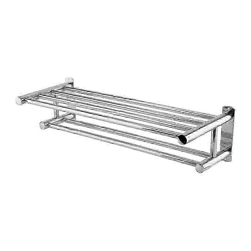 Double Layer Chrome Wall Mounted Bathroom Towel Rail Holder Shelf Storage Rack