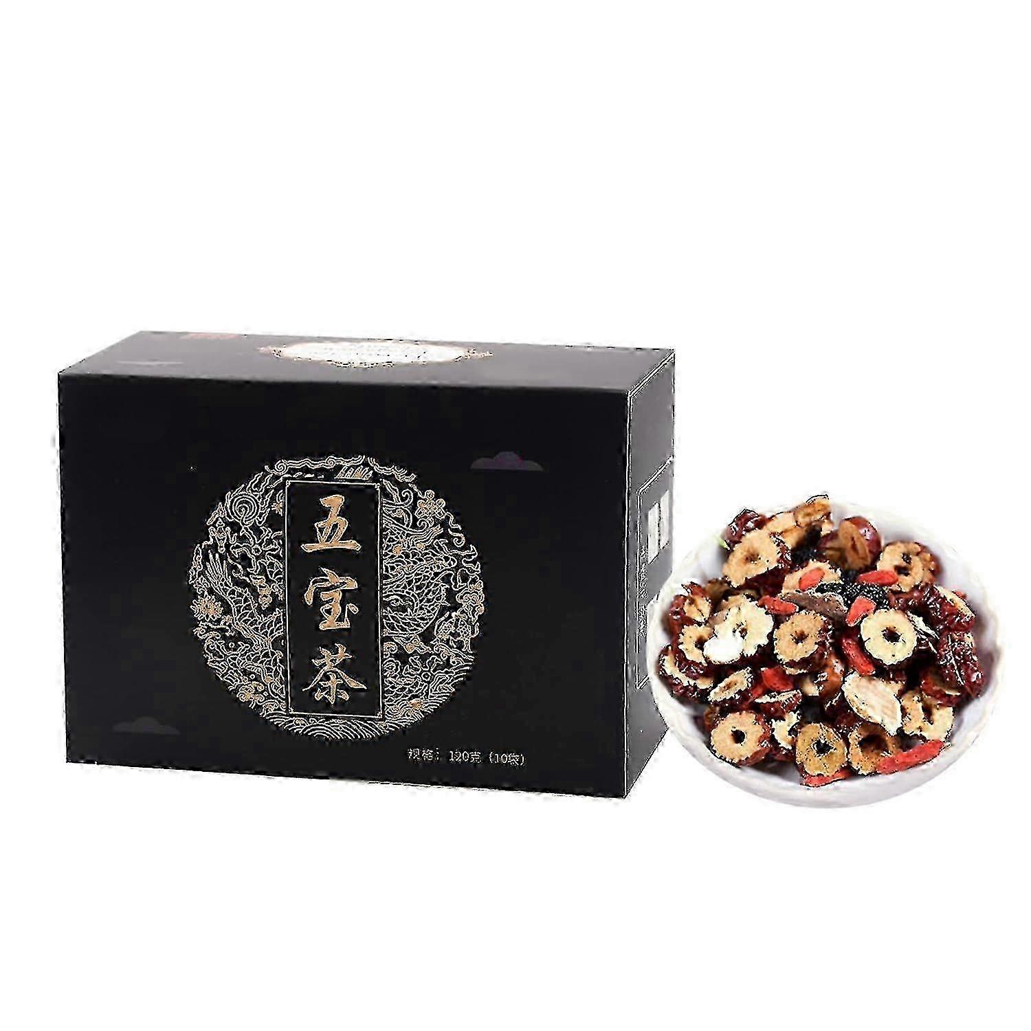 Five Treasures Health Tea, Men Kidney Tea Ginseng Polygonatum Wolfberry Dried Jujube Mulberry Maca Nourishing Wellness Tea