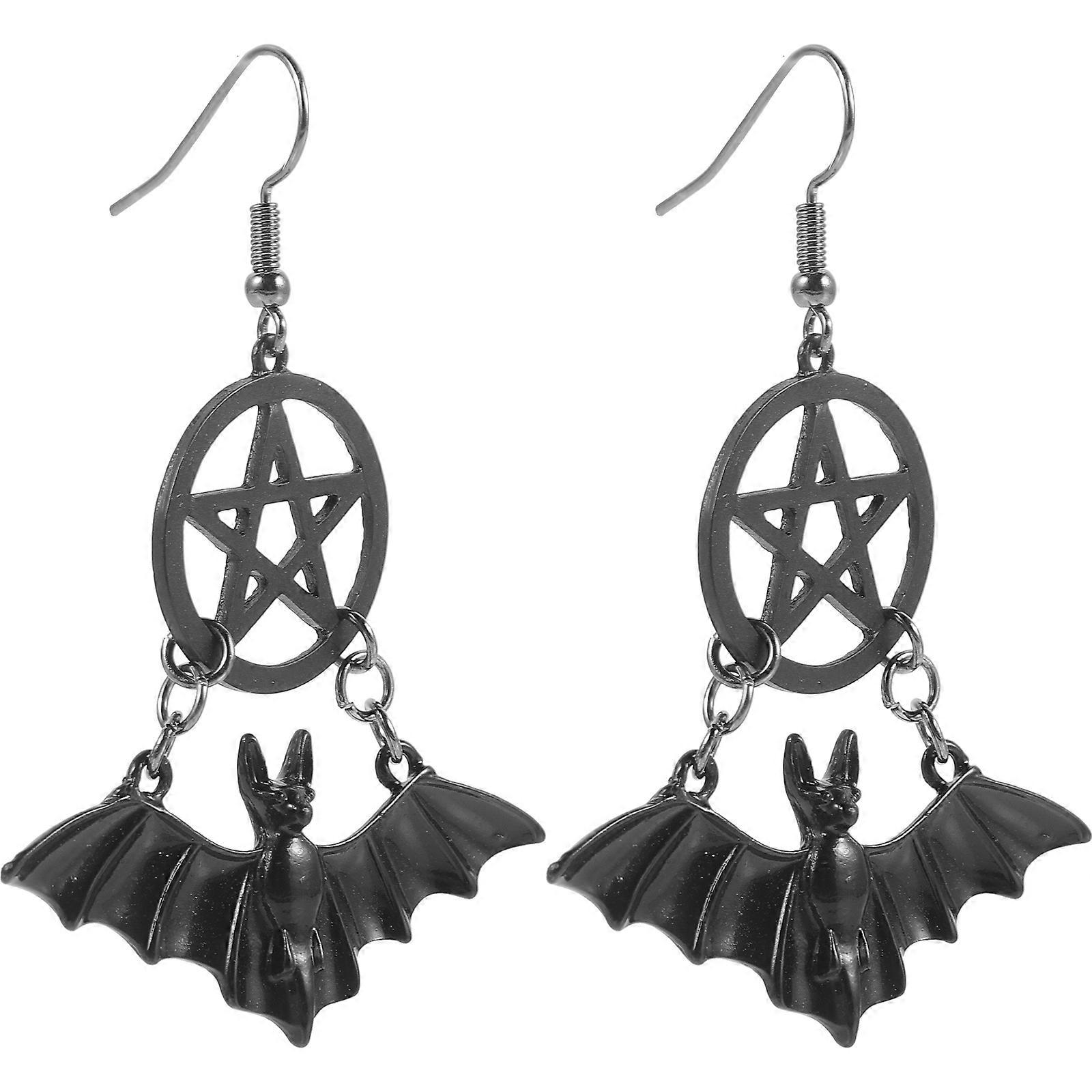 Pentagram Shape Earrings Hip Hop Style Black Alloy 3.00X2.50X0.20Cm 1Pair