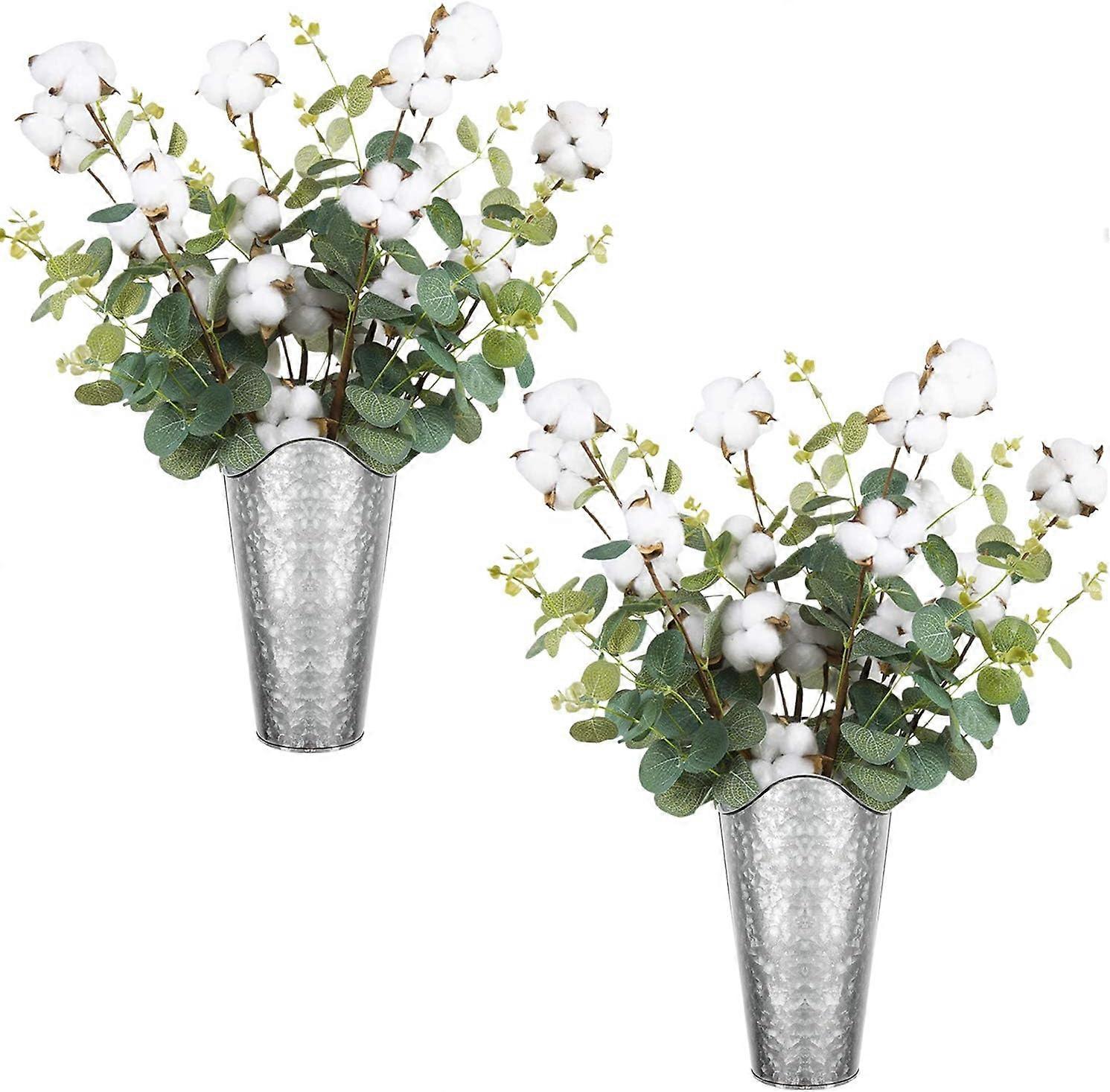 Galvanized Wall Planter 2 Sets Metal Hanging Vase for Farmhouse Rustic Style Country Home Wall Decor