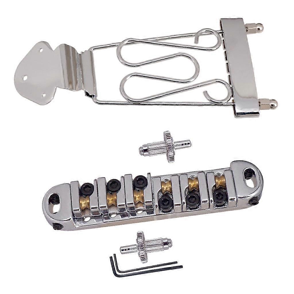 Zinc Alloy Guitar Roller Saddle Bridge String Tailpiece, Small Adjustable Lock Posts, Hex Wrenches for Jazz Archtop/LP Electric Guitar, Silver