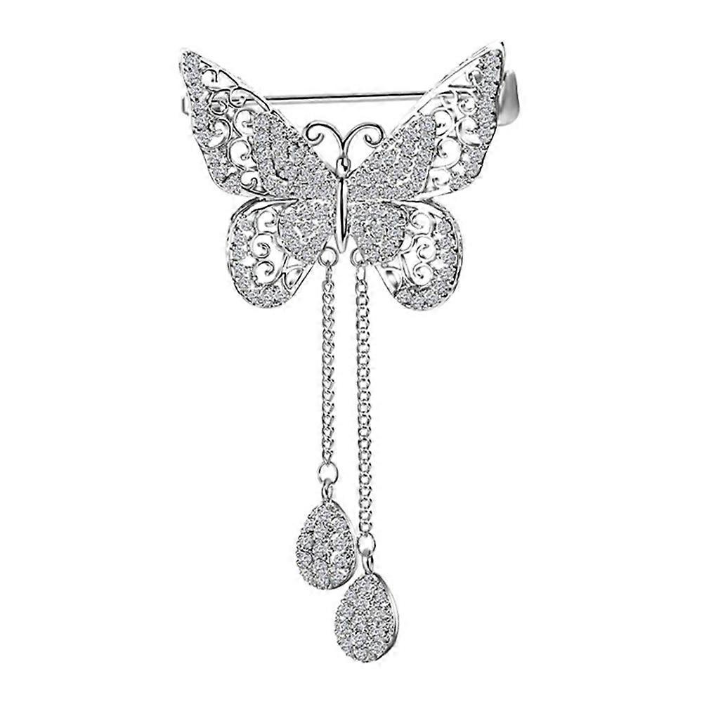 Zinc Alloy Brooch Large Zircon Breastpin Butterfly Shape Silver Color Elegant Style Birthday For Women 1Pcs