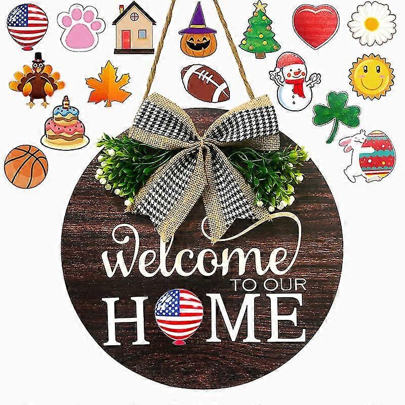 Interchangeable Seasonal Welcome Sign For Front Door Farmhouse Front Porch Decor Sign With Wreath 16 Seasonal Sign