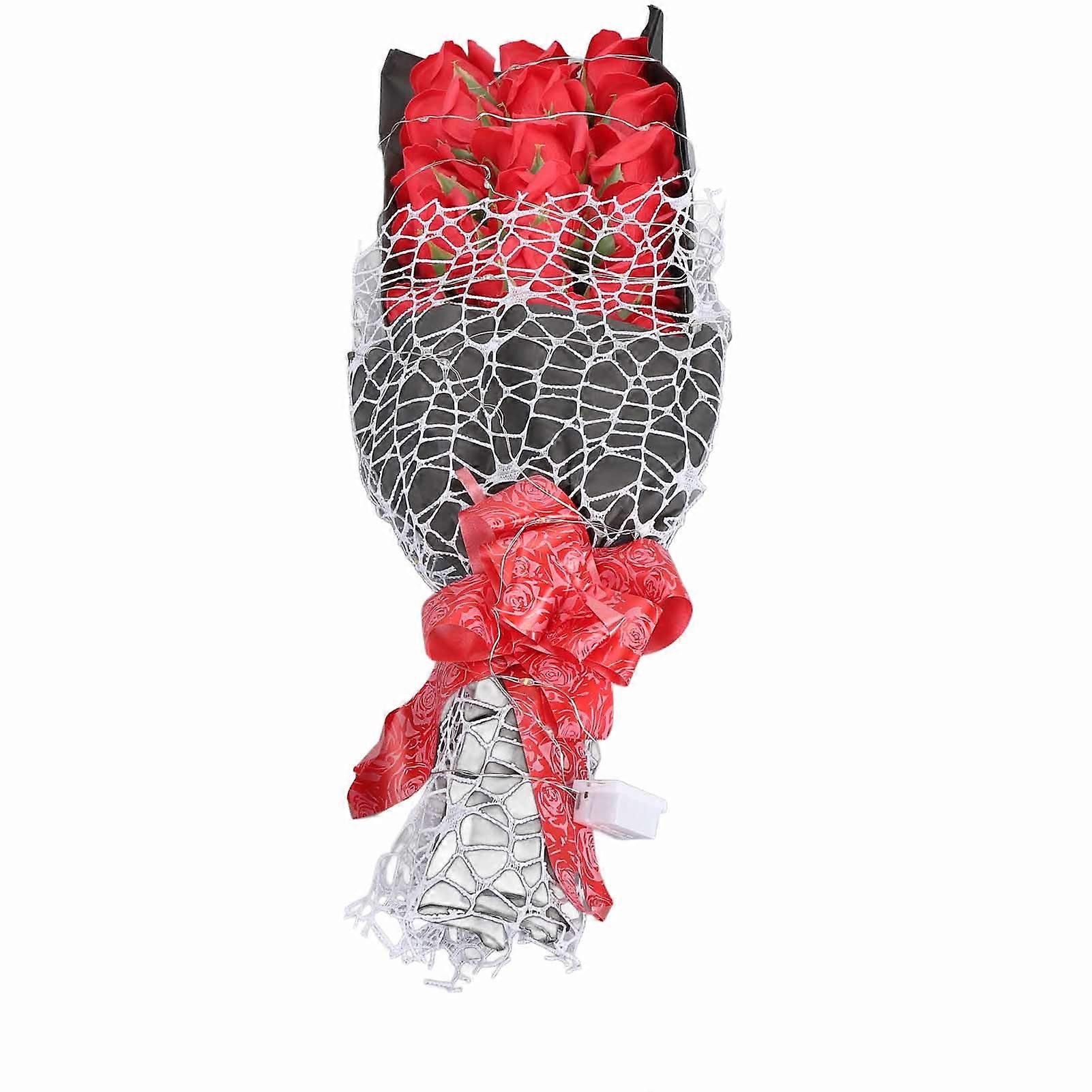 Light Up Artificial Rose Flowers Lifelike Fake Roses Bouquet Decorative Forever Flowers with LED Light String for Wedding Birthday Red