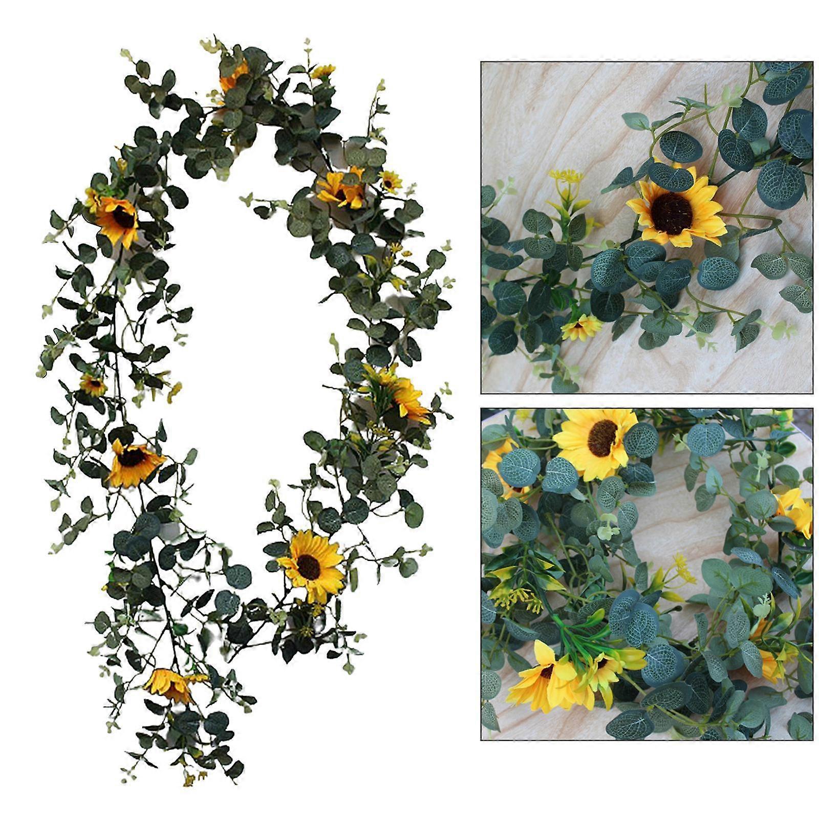 Artificial Summer Wreath, 8 in Decorative Floral Wreath with Yellow and Green Eucalyptus Leaves Front Door Wreaths for All Seasons