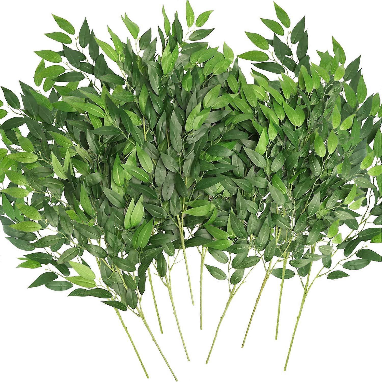 Artificial Italian Ruscus Greenery Stems, 10 Pack Faux Green Leaf Garland for Wedding