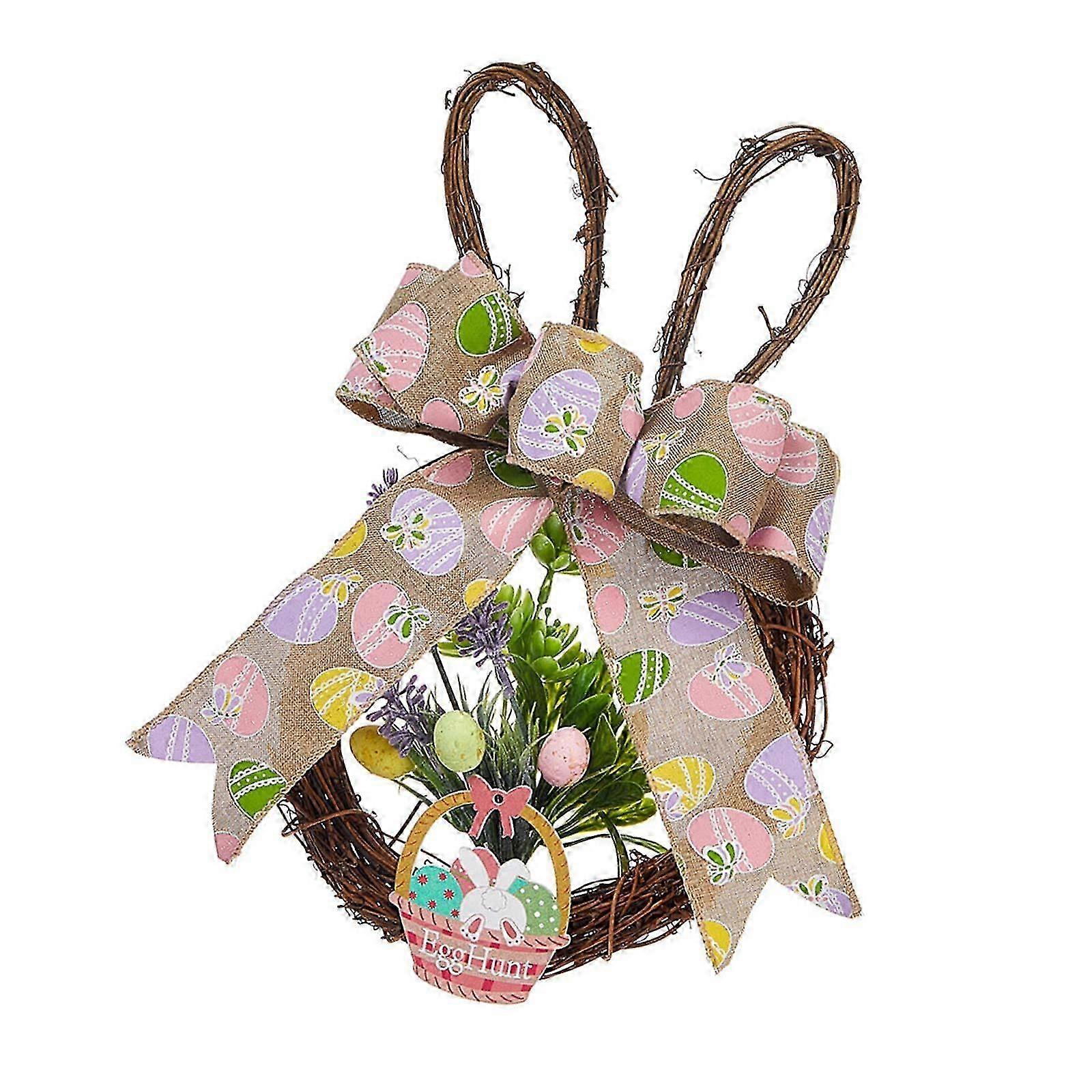 Artificial Easters Wreath Decoration Easters Rattan Rabbit Wreath with Flower and Bowknot Designs for Seasonal Decors Multicolor Cs