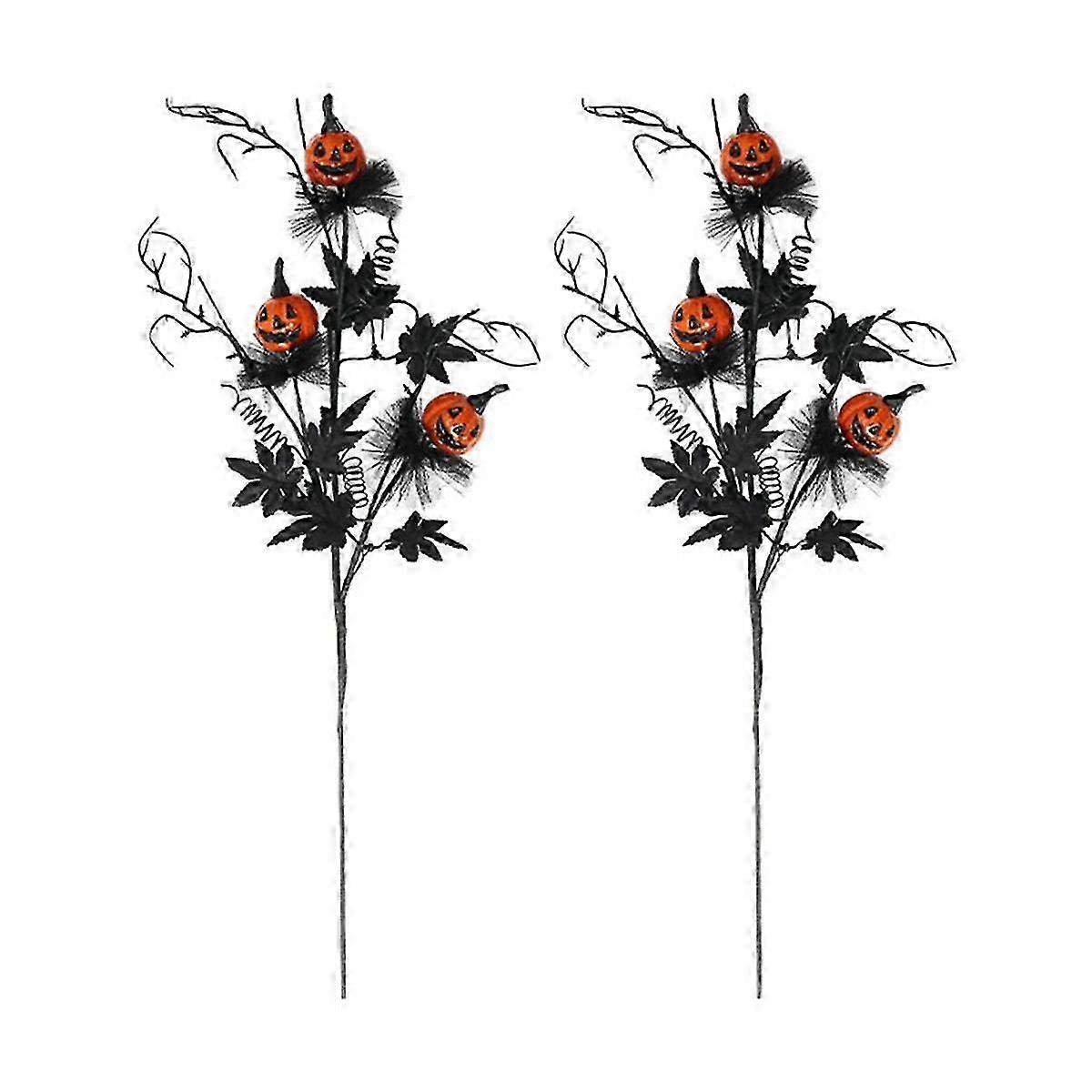 Artificial Pumpkin Branches Halloween Black Maple Leaf Pumpkin Banquet Halloween Floral Decor Haunted Decoration 2pcs