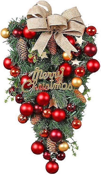 Artificial Christmas Teardrop Swag - Teardrop Garlands With Candy Cane Bow Red Berries, Christmas Tree Hanging Decorations, Upside Down Artificial Chr