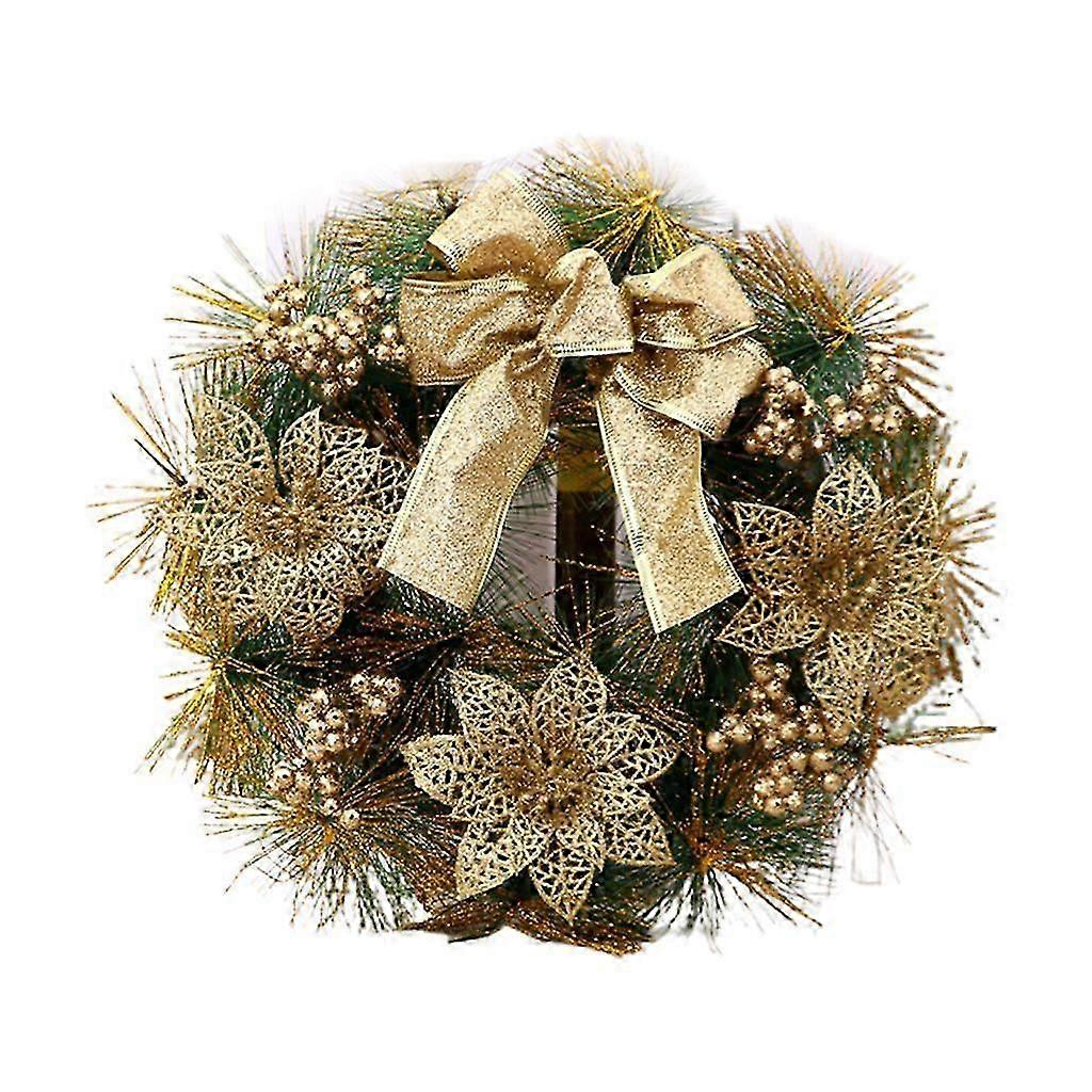 Artificial Christmas Wreath Flocked with Flower Bow Garland for Front Door Wall Farmhouse Decor Outdoor Indoor Party Supplies