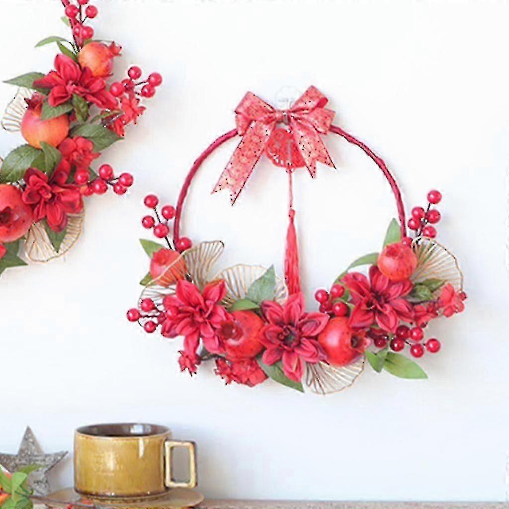 Artificial Pomegranate Wreath Garland - 50x25cm Front Door Hanging Home Decor