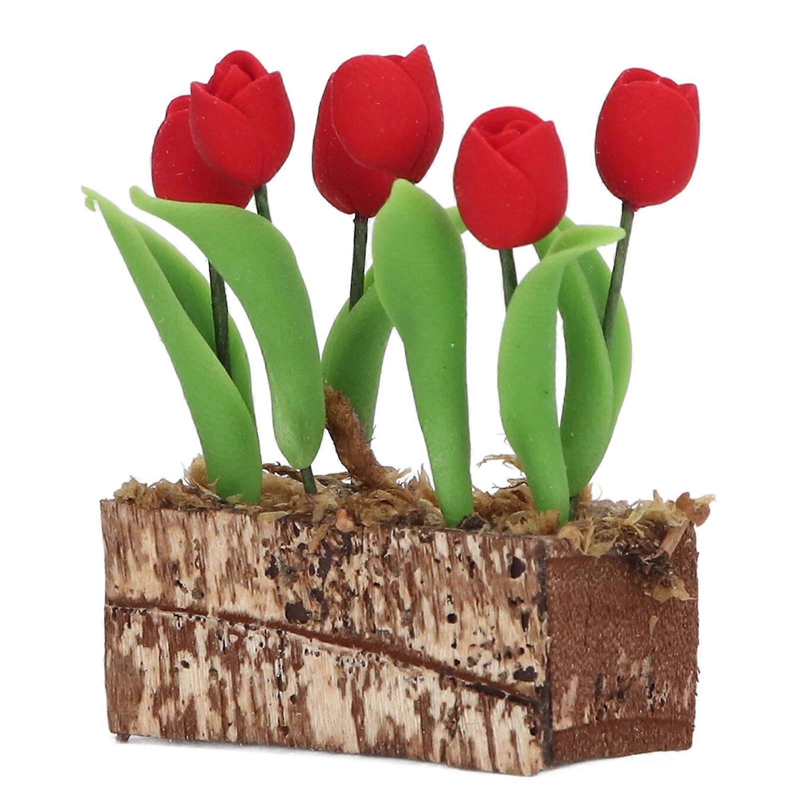 Artificial Tulips Flower Ornament 1:12 Doll House Garden Decor Simulated Model Miniature Accessory Red
