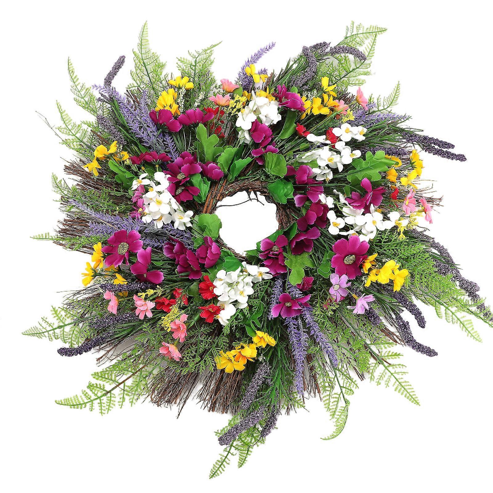 Spring Floral Wreath with Artificial Daisy Lavender Door Decor