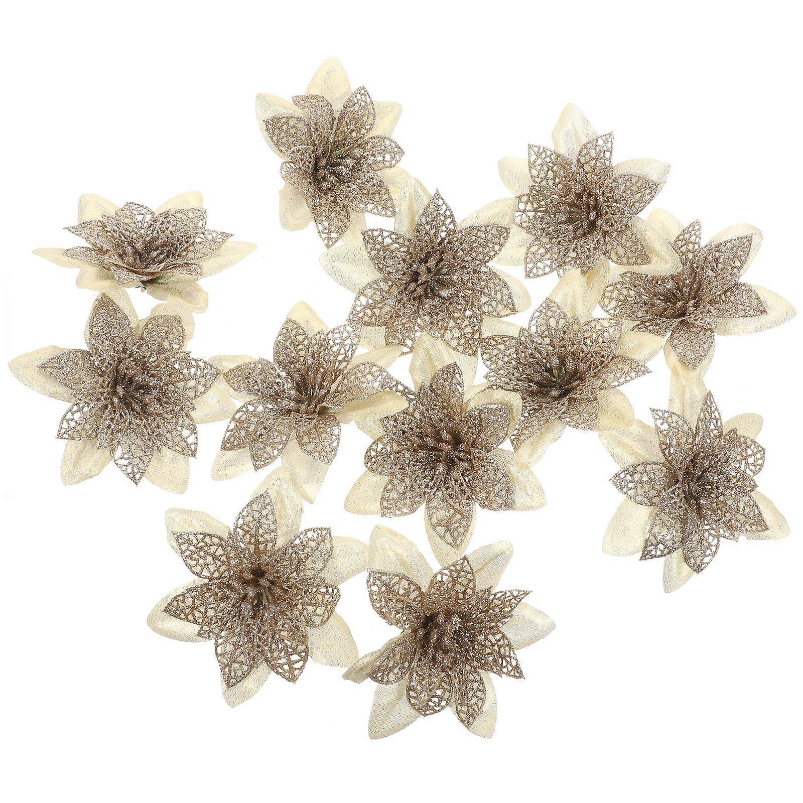 Artificial Poinsettia Flowers 12Pcs Golden Decorative Floral Picks For Festive Atmosphere Creation