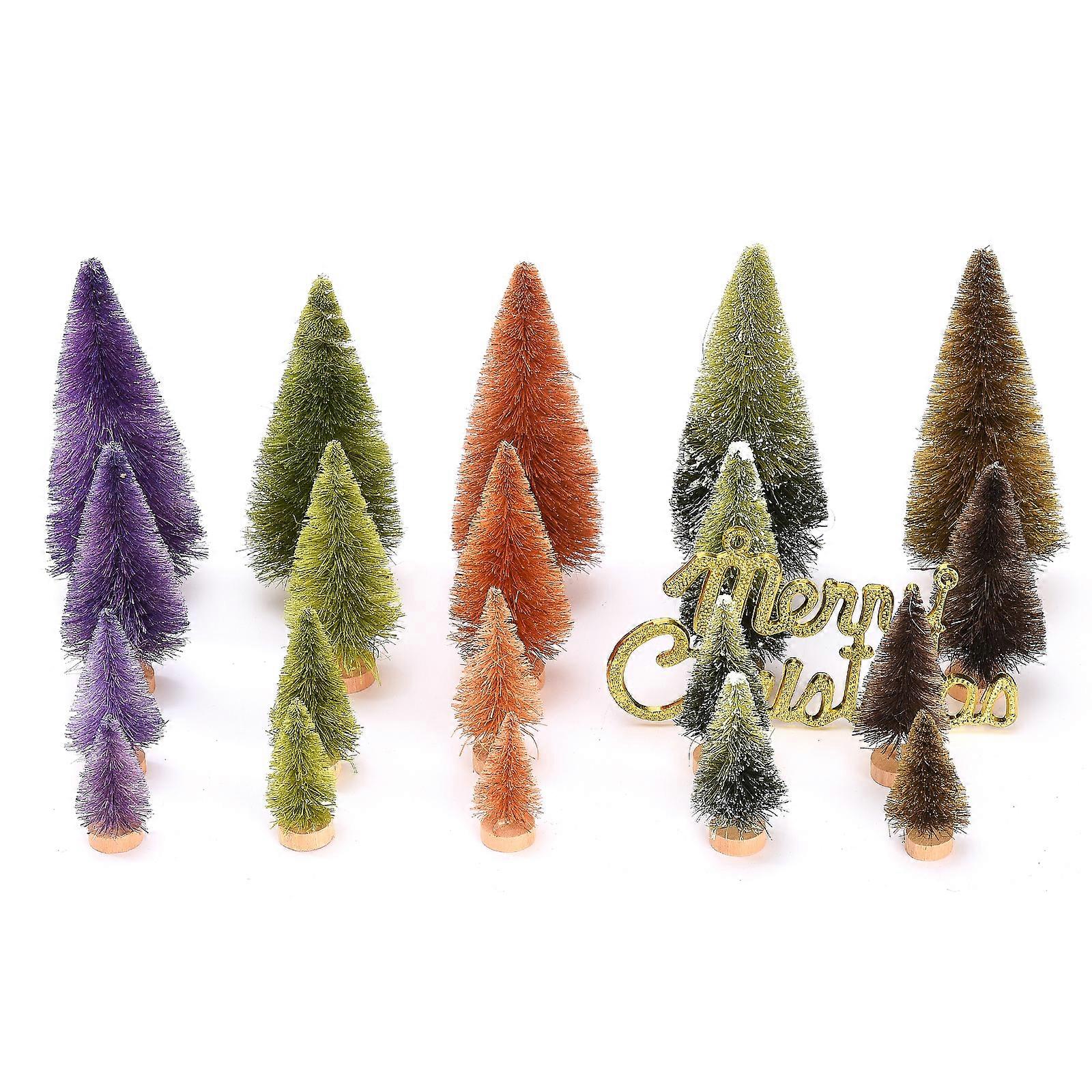 Artificial Mini Christmas Trees Set 21PCS Sisal Wood Ornaments