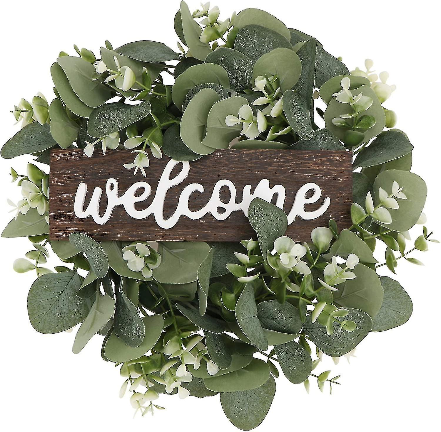 Artificial Eucalyptus Wreath Leaves Branch Garland Welcome Sign Door Wreath Welcome Door Sign Wall Wreath For Living Room Wall Decor Wedding Spring Fr