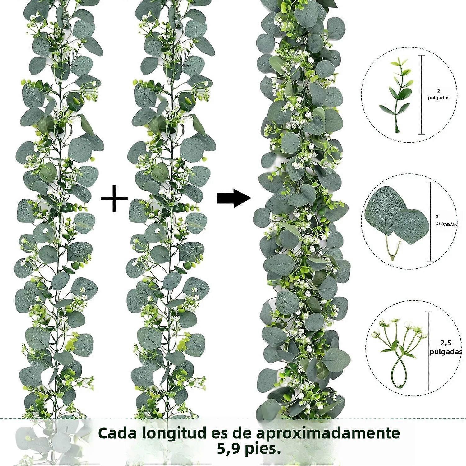 Artificial Eucalyptus Leaves Garland with White Flowers 1Pc Wedding Home Decor Greenery Real Touch Resin Material