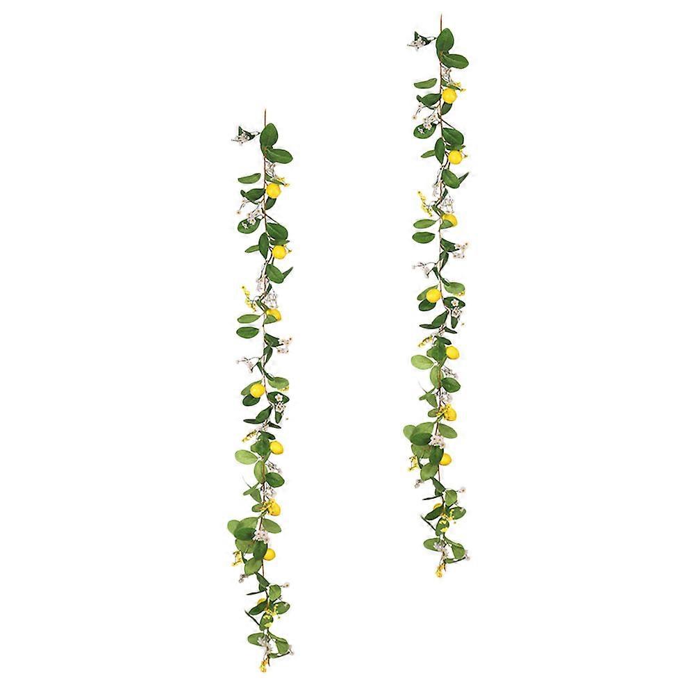 Artificial Lemon Garlands Door Decoration Yellow Color Oval Shape Natural Design For Indoor Garden 2Pcs