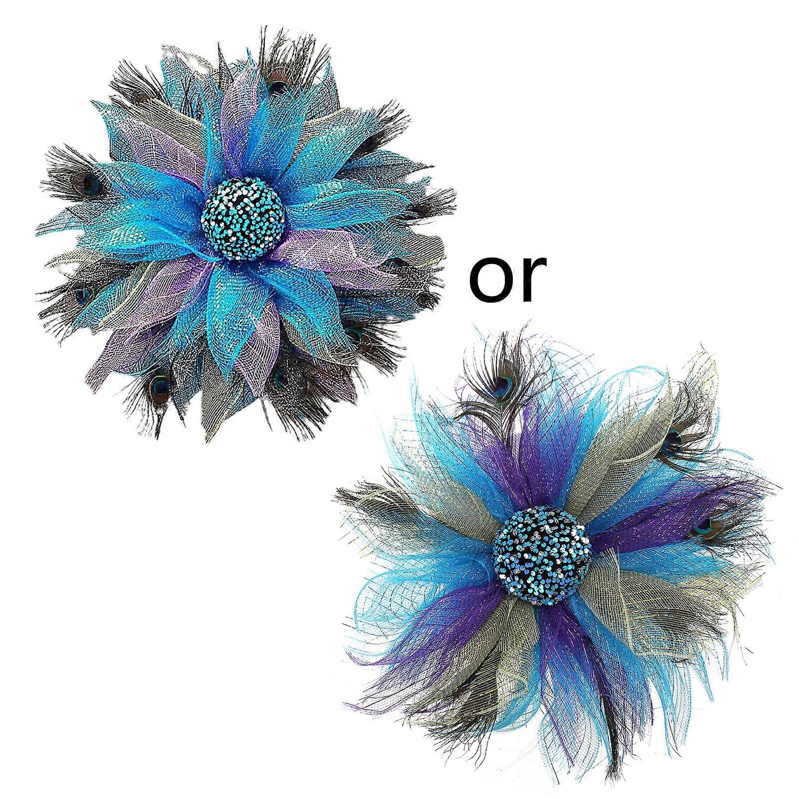 Artificial Peacock Feather Wreath Colorful Gauze Sunflower Circle Door Hanger Hanging Garland for Wall Window Decoration