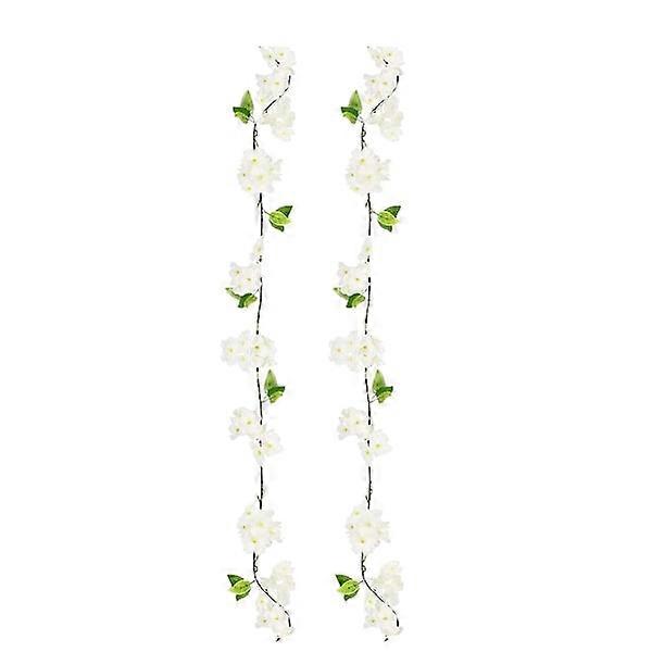 Artificial Cherry Blossoms, 2 pcs Hanging Plants Silk Garland Fake Cherry Blossoms for Home Garden Wall Fence Indoor Outdoor Wedding