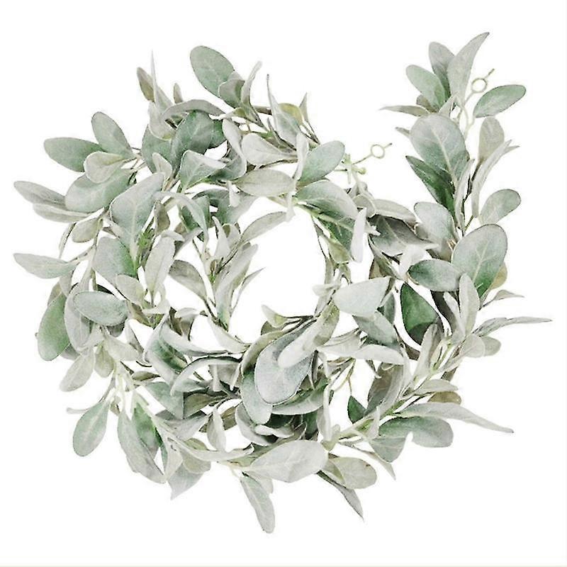 Artificial Flocked Lambs Ear Garland - 2Meter Soft Faux Vine Greenery and Leaves for Farmhouse Mante