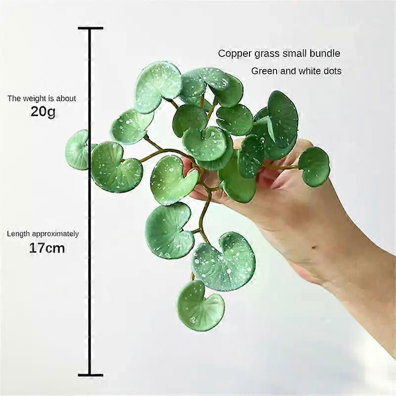Artificial Plant Mini Bouquet Copper Coin Grass Soft Glue Fake Green Plants Wall Hanging for Home Office Garden Decoration Description: Material: The Blade Is Made Of EVA Process: Soft Rubber Process Handmade Applicable: Decorate Living Room, Study Room, Bedroom, Restaurant, Hotel Lobby, Engineering Greening, Shooting Props, Etc. Height: 17cm-30cm Weight: 90g Specifications: 1. 【Soft Gel Mini Succulents】This Mini Succulents Bring You A Soft Touch! 2. 【Desmodium Red Palm Leaf】Add A Decorative Touch To Your Home With This Mini Succulent! 3. 【Soft Gel Mini Succulents】Create A Soothing Atmosphere With This Mini Succulents! 4. 【Soft Gel Mini Succulents】Add A Touch Of Nature To Your Desk With This Mini Succulents! 5.【Soft Gel Mini Succulents】Enhance Your Home Decor With This Mini Succulents! Package Included: 1 bundle of * pseudo plants